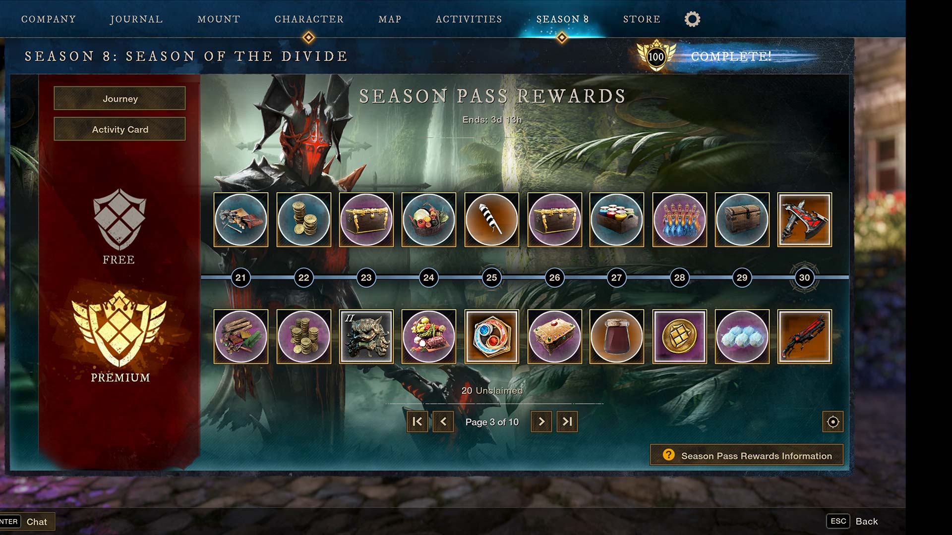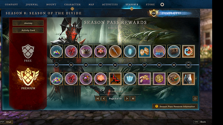 Season 8 features 100 levels of rewards across two tracks: Free and Premium. You’ll earn rewards by completing Journey tasks, Challenges, Activity Cards, and daily bonuses. Here’s what’s waiting for you this season: