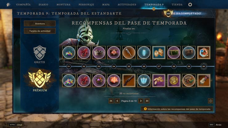 Todos los jugadores tendréis acceso al seguimiento gratuito. Quienes adquiráis el pase prémium (disponible por 20 000 marcas de fortuna) desbloquearéis el seguimiento del mismo nombre, que incluye objetos exclusivos y grandes lotes de materiales. Si ya habíais subido de nivel antes de comprarlo, recibiréis todas las recompensas prémium anteriores a vuestro nivel actual.